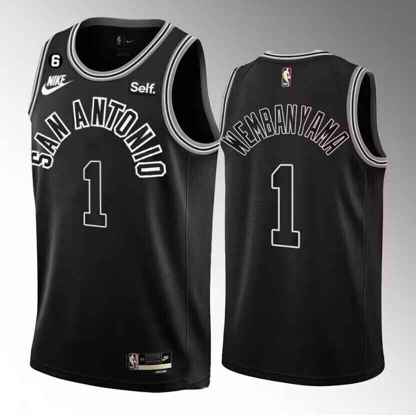 Men's San Antonio Spurs #1 Victor Wembanyama Black 2022/23 Classic Edition With NO.6 Patch Stitched Basketball Jersey