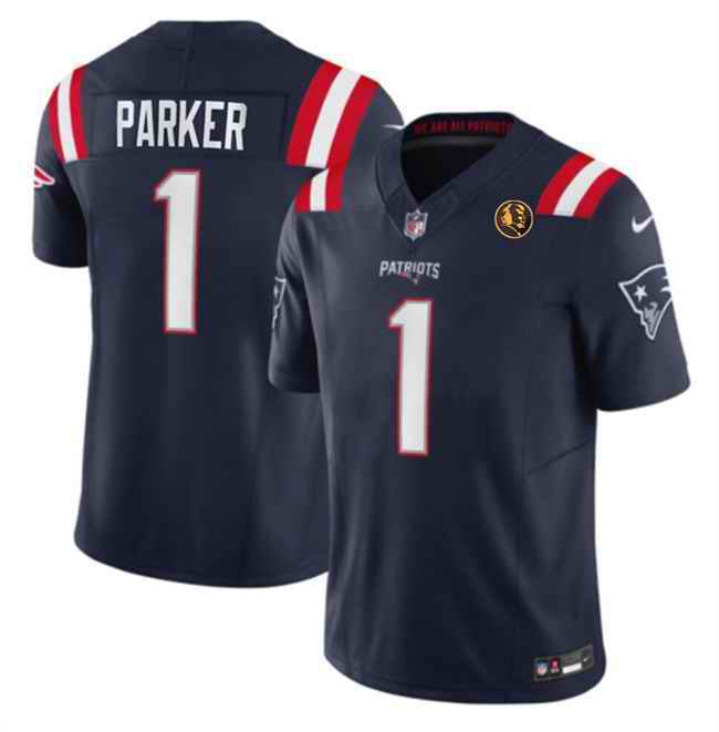 Men's New England Patriots #1 DeVante Parker Navy 2023 F.U.S.E. With John Madden Patch Vapor Limited Stitched Football Jersey