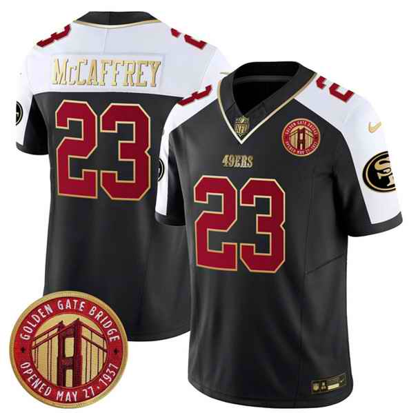 Men's San Francisco 49ers #23 Christian McCaffrey Balck F.U.S.E. Golden Gate Bridge Patch Alternate Vapor Limited Stitched Football Jersey