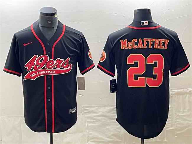 Men's San Francisco 49ers #23 Christian McCaffrey Black With Patch Cool Base Stitched Baseball Jersey