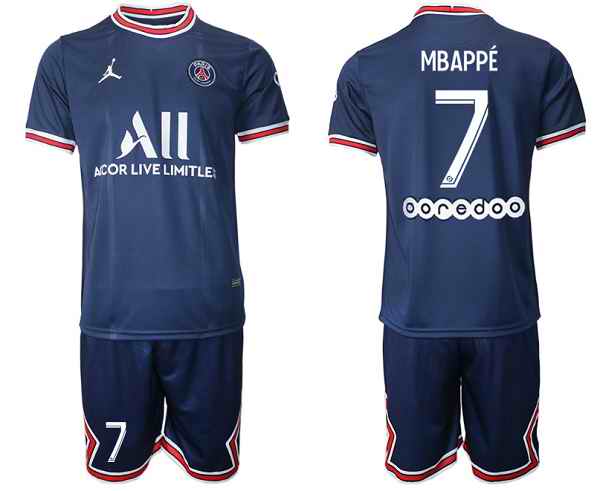 Youth Paris Saint-Germain #7 Mbapp' 2021/22 Blue Soccer Jersey