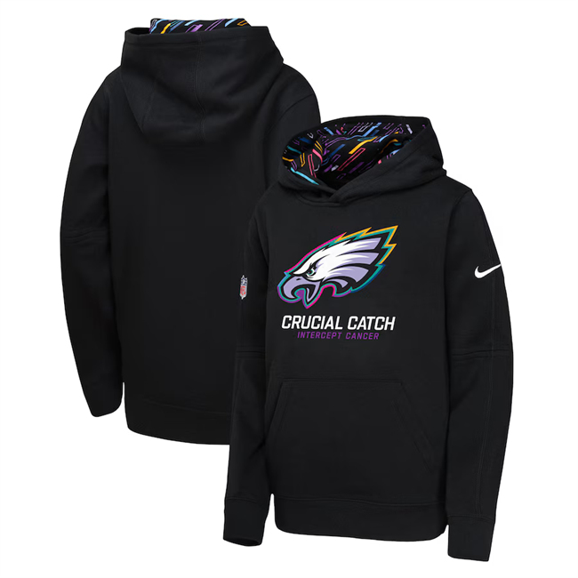 Youth Philadelphia Eagles Black 2024 Crucial Catch Club Pullover Hoodie